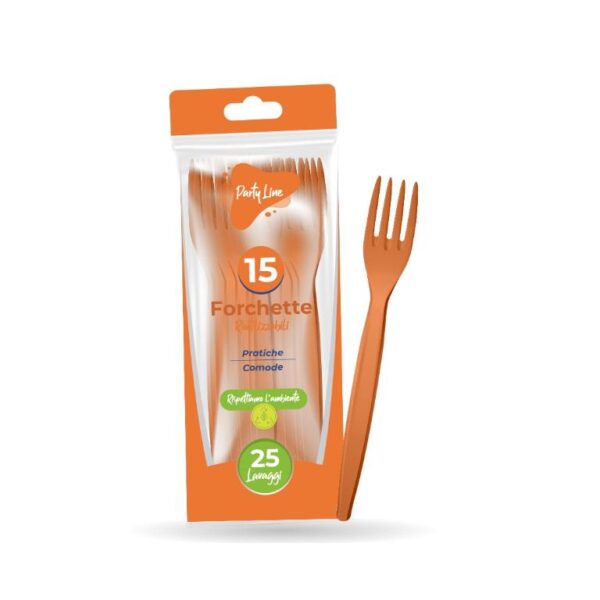 Forchetta PP riutilizzabile 15pz Arancione