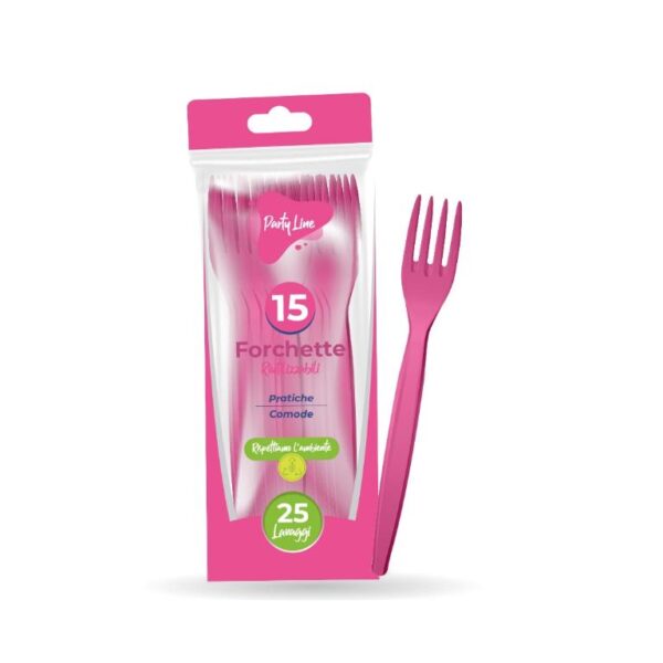 Forchette PP riutilizzabile 15pz fucsia