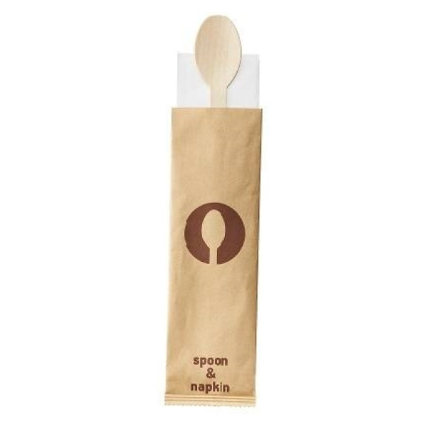 CUCCHIAIO IN LEGNO IMBUSTATO CON TOVAGLIOLO h16cm cf.48pz