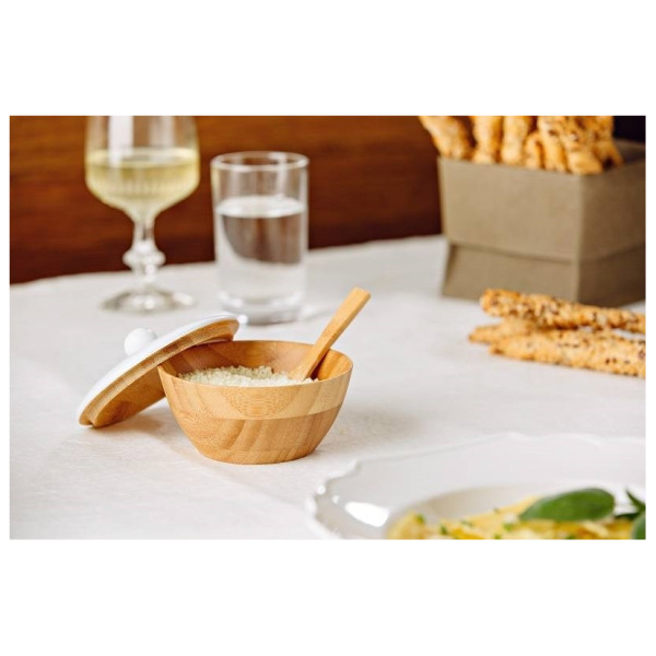 FORMAGGERA IN BAMBOO CON COPERCHIO E CUCCHIAINO Ø11x5 cm