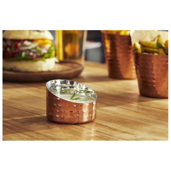 CONTENITORE INCLINATO IN ACCIAIO MARTELLATO, COLOR RAME Ø7x5 cm - 120 ml