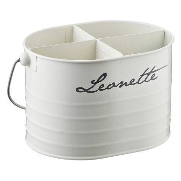 LEONETTE - SECCHIELLO IN LATTA BIANCO CON 4 SCOMPARTI 16,5x12,5x11 cm