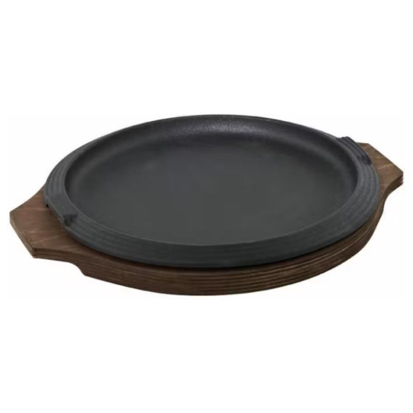 Piatto a servire d.26 cm in ghisa smalt con vassoio legno-multristato