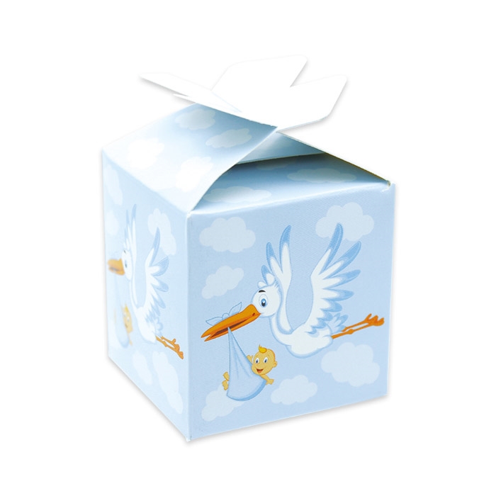 25 scatoline cubetto fiocco cicogna celeste cm.5×7