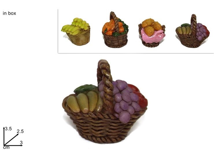 4 pz cestini con frutta per decorazione presepe e case in miniatura in poliresina