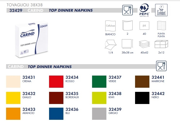 40 pezzi tovaglioli top dinner 2 veli 38x38cm carind kiwi