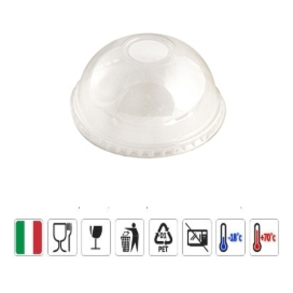 Coperchio bombato per take away di bevande, frullati e frappè dai locali, realizzati in plastica trasparente monouso 100% riciclabile PET 01