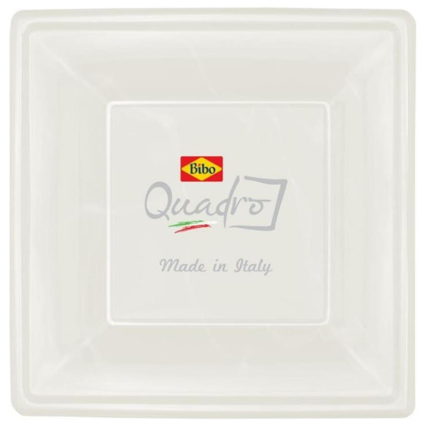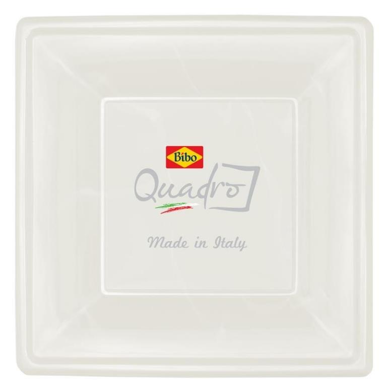 Piatti di plastica rigida quadrati riutilizzabili, colore bianco perlato, 23X23cm. Piatti lavabili e adatti al microonde dal design moderno ed elegante.