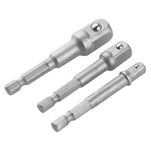 In acciaio al cromo vanadio con finitura satinata. Attacco esagonale da 1/4″. Misure quadro: 1/4″xMm. 65, 1/2″xMm. 70 e 3/8″xMm. 65. In blister.