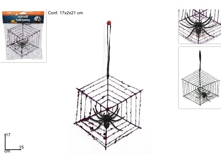Appendino ragnatela con ragno 17cm 2col