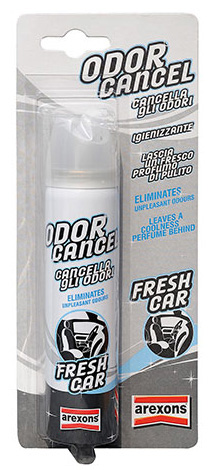 Art. 1928 ODOR CANCEL Studiato per eliminare gli odori sgradevoli dallauto e contemporaneamente igienizzarla. Pu essere usato sia vaporizzandolo in modo diffuso nellabitacolo sia impregnando i tessuti e le superfici porose allinterno dellauto. La sua formula, studiata in particolare per combattere lodore di fumo, elimina anche i cattivi odori lasciati da umidit, animali, ecc.. Lutilizzo del prodotto lascia un fresco profumo. Spray da 75 ml
