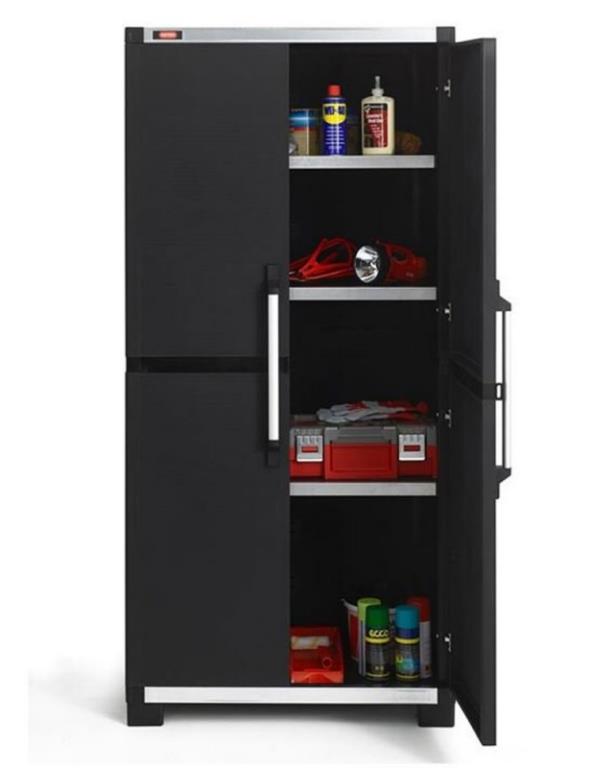 Armadio keter garage xl alto, dotato di: struttura robusta, cerniere in metallo, ripiani rinforzati, piedini regolabili e chiusura con lucchetto.