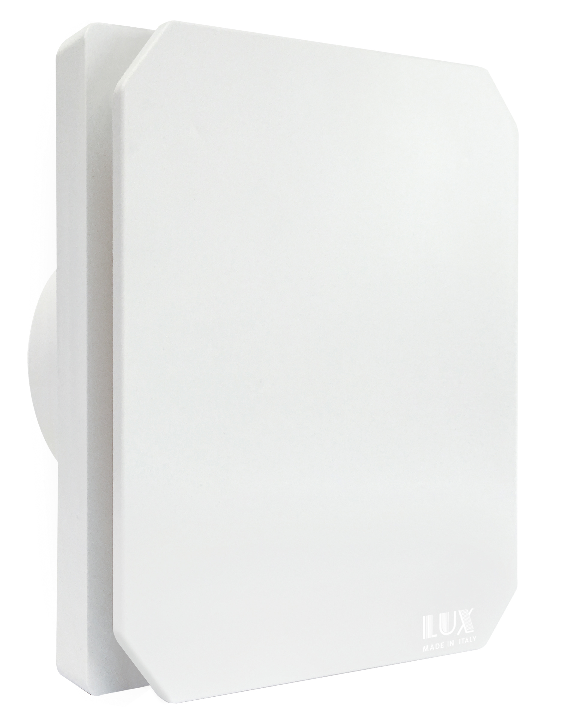 Mod. LUX 304 In materiale termoplastico antipolvere. Applicazione a parete. Base ad apertura fissa. Diametro 10 cm Portata 100 mc/h Consumo 15 W