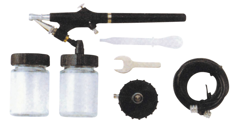Mod. A-138 composto da – 2 serbatoi inferiori da 22 cc – 1 tubo flessibile da 1,5 m – 1 adattatore – 1 contagocce. Per lavori di modellismo e di decorazioni su piccole superfici.