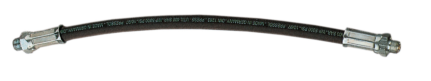 alta pressione per compressori e pistole dingrassaggio. Raccordi in acciaio zincato. Filetti M 10 x 1. Pressione desercizio 200 – 400 Bar. Pressione di scoppio 800 Bar. Lunghezza 500 mm.