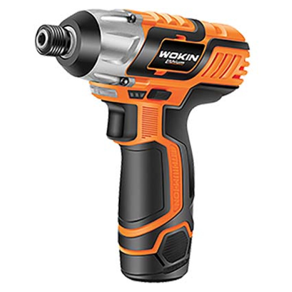 A massa battente. Attacco utensile da 1/4″, con sgancio rapido. Giri/Min. 2.400. Colpi/Min. 3.000. Momento di torsione 100Nm. Reversibile. Inpugnatura Soft-Grip. Luce LED. Indicatore livello di carica batteria. in dotazione: carica batterie, 1 batteria da 1,5 Ah.