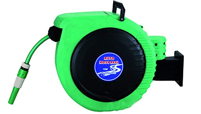 Mod. ROLLING-GO con supporto girevole a parete. Completo di: – 15 m di tubo da ½ – 1,5 m di tubo di collegamento al rubinetto – Lancia – Raccordi