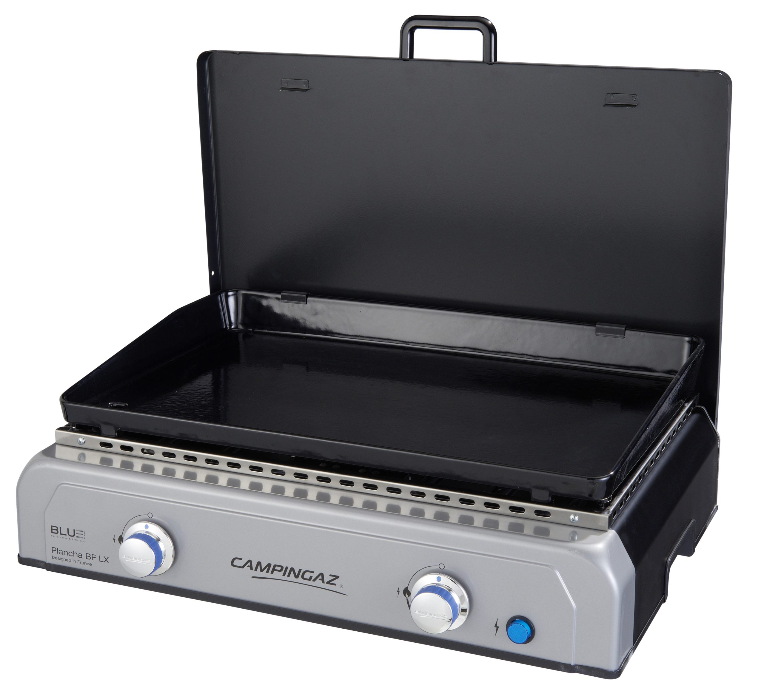 struttura in acciaio verniciato. Due bruciatori. Alimentazione GPL. Superficie di cottura in ghisa smaltata. Laccensione elettrica agevole e le batterie sono incluse. Piano di cottura 60 x 40 cm. Potenza 6 kW. Contenitore del grasso lavabile in lavastoviglie di facile accesso. Maniglie integrate per un facile trasporto. Dimensioni 65 x 53 x h 22 cmm. Peso 20 kg.