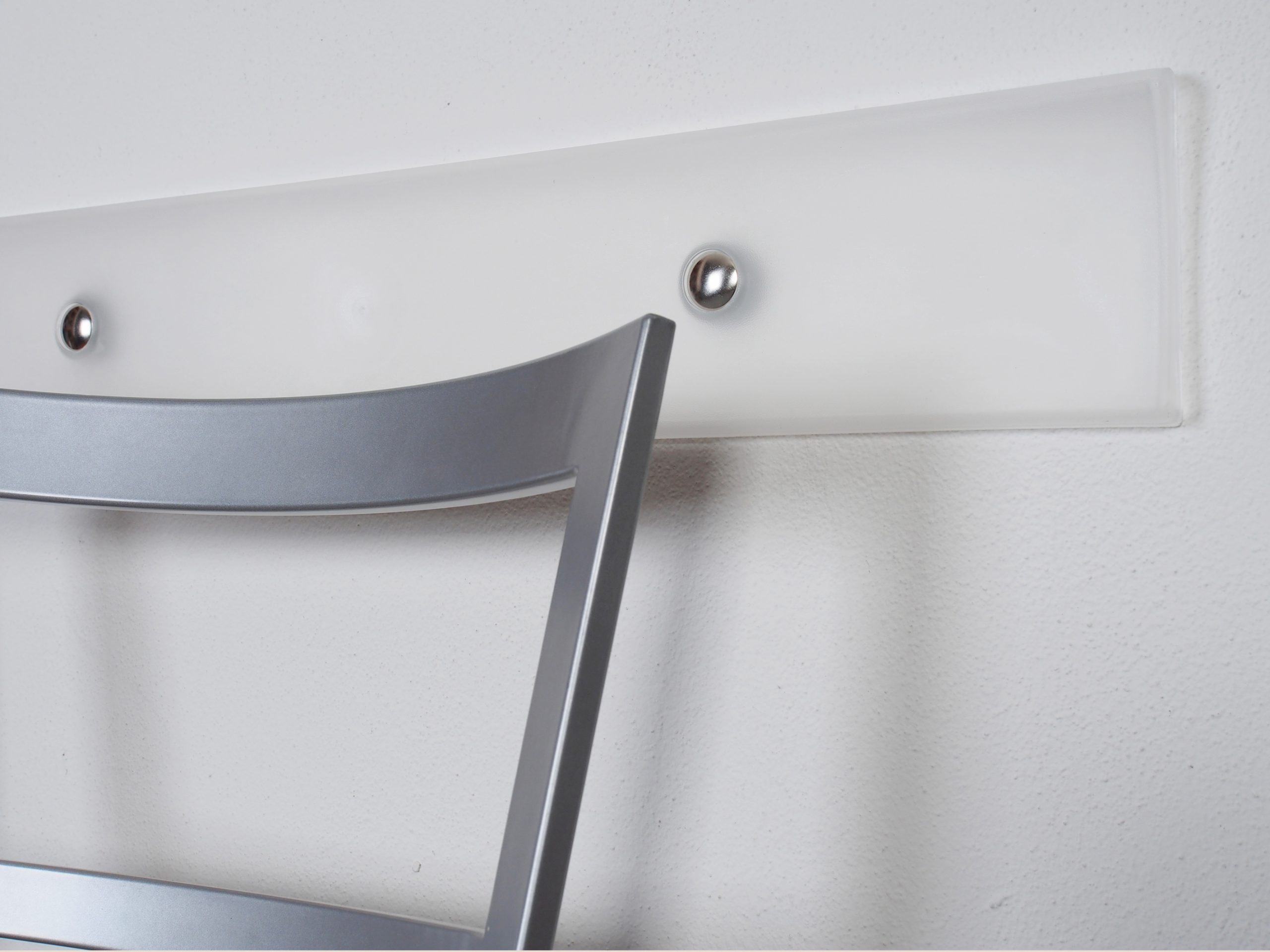 in metacrilato trasparente. Completo di viti, tasselli e borchie. Dimensioni 600 x100 mm