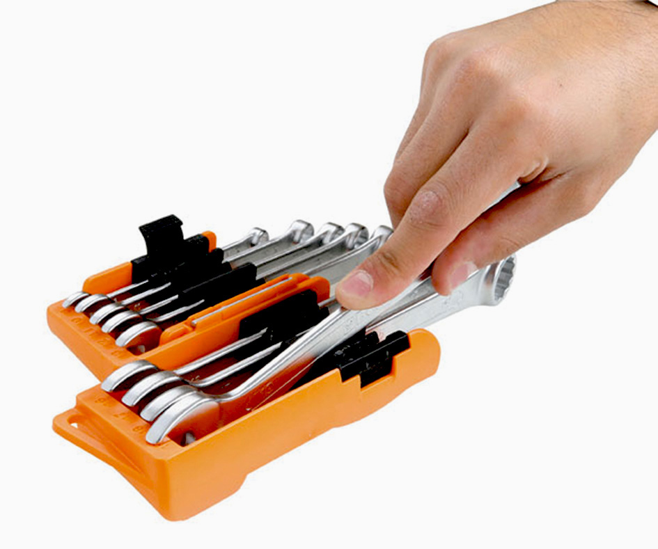 Art. 42/SC 9I serie da 9 pezzi esecuzione cromata, teste lucide. Tipo corto. UNI 7738 – DIN 3113 Misura 8-10-11-12-13-14-15-17-19 mm. Con supporto compatto e bloccaggio sicuro delle chiavi.