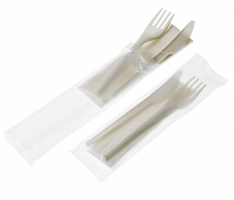 BIS COLTELLO FORCHETTA E TOVAGLIOLO BIODEBRADABILI