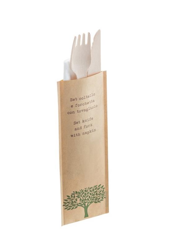 Bis in balsa forchetta-coltello-tovagliolo bio 48pz leone