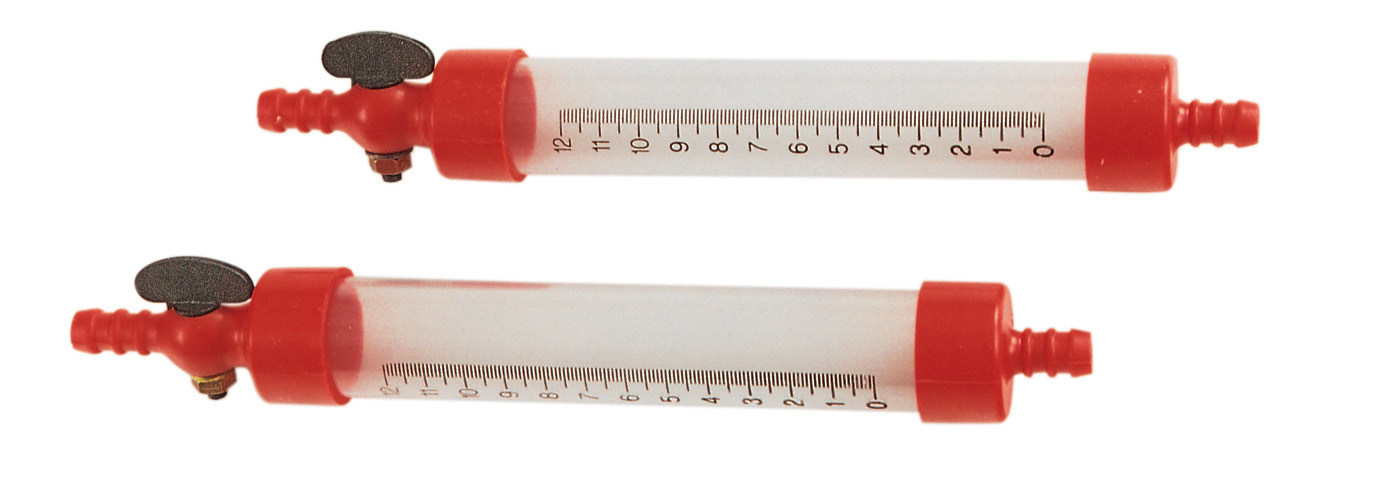 rubinetti e terminali in plastica antiurto. Graduazione in millimetri.