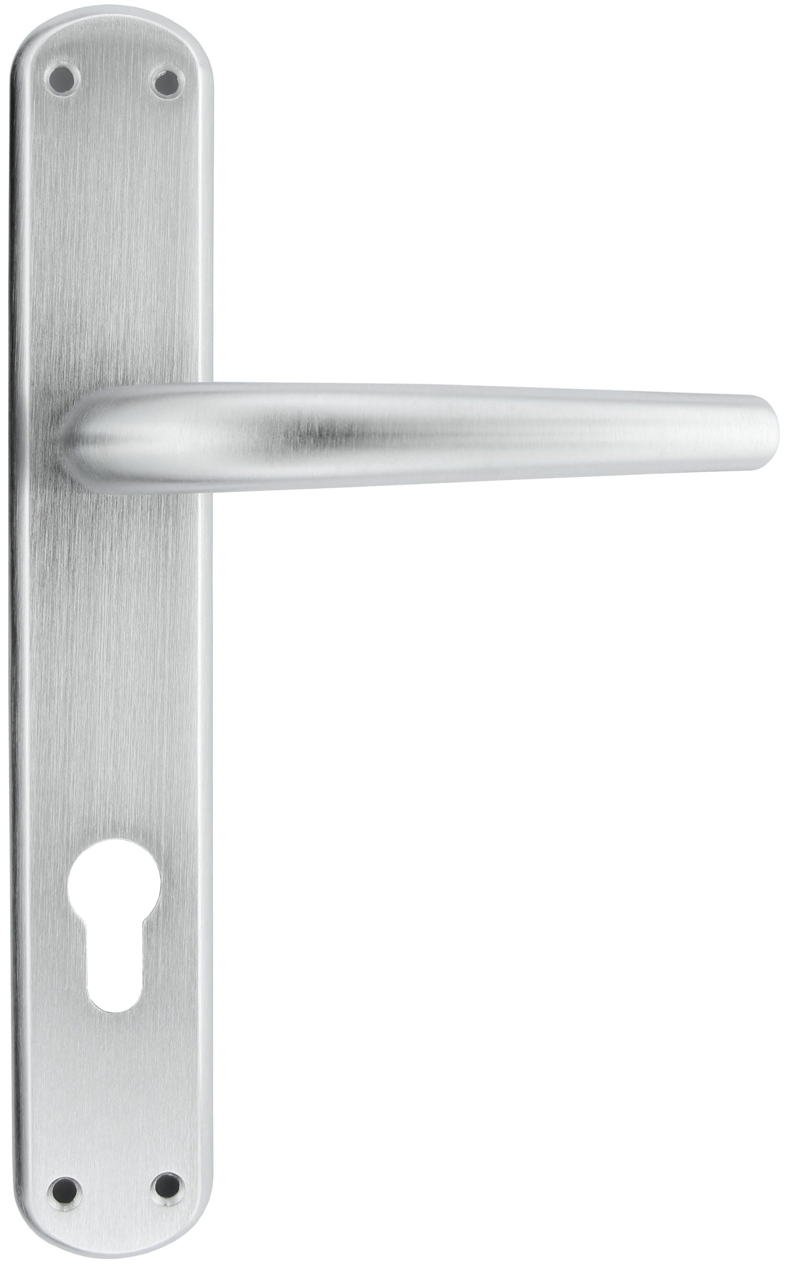 maniglia con placca Q8/FY in lega. Finitura cromo satinato
