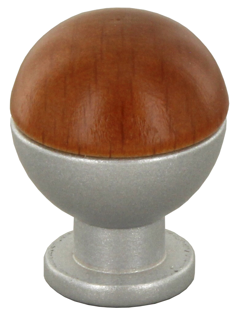 POMOLO PER MOBILI Art. 735/B in legno, basetta in ottone nichel satinato. Diametro 18 mm Ciliegio Confezione blister (2 pz)