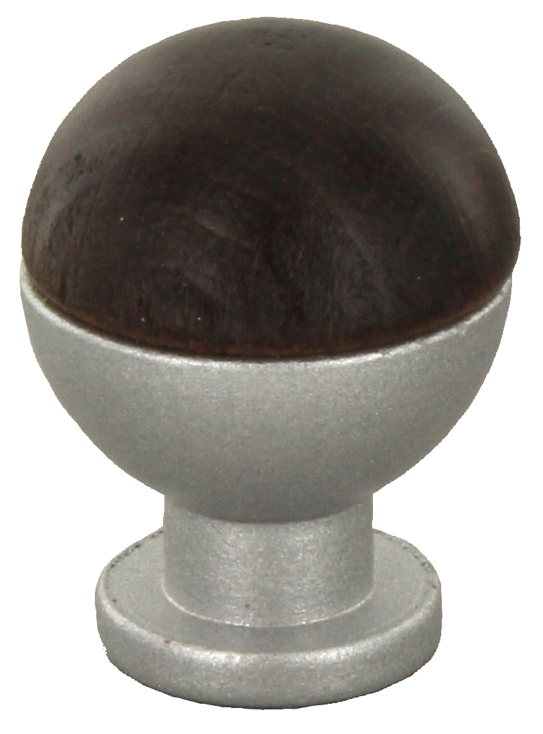 POMOLO PER MOBILI Art. 735/B in legno, basetta in ottone nichel satinato. Diametro 18 mm Noce scuro Confezione blister (2 pz)
