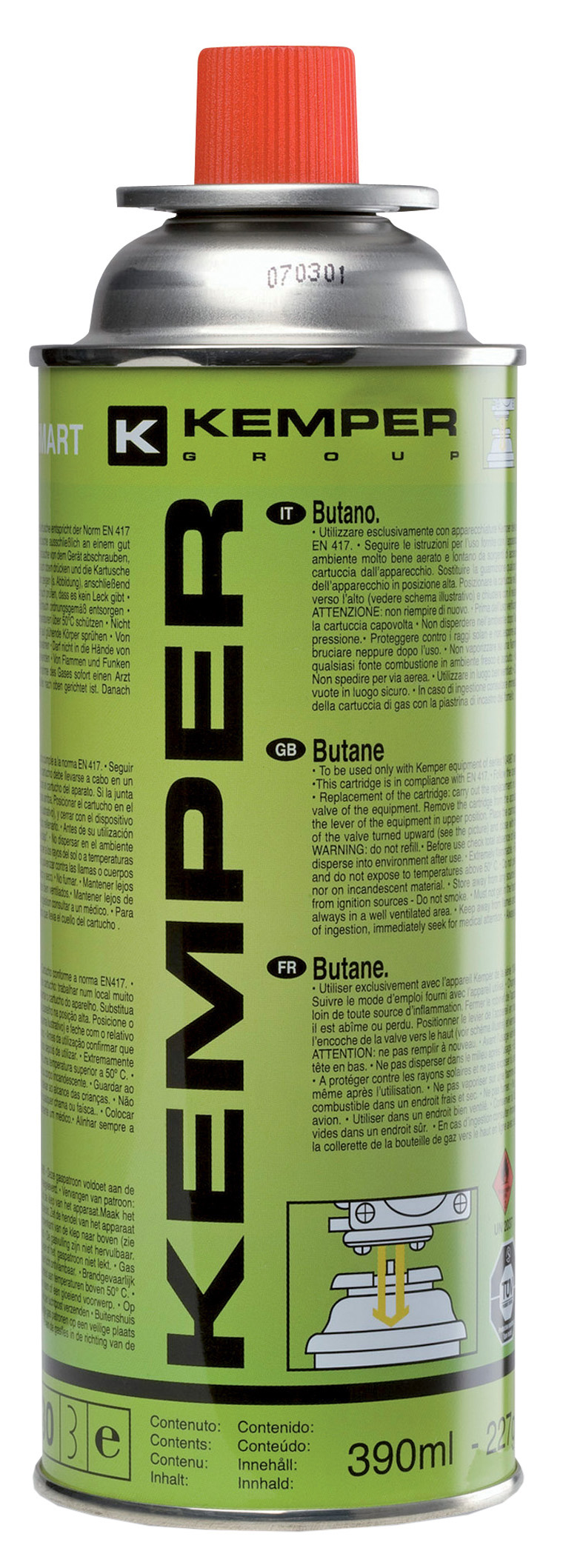 Cartuccia gas butano da 380 ml. 220 grammi, attacco a baionetta, a norma EN417