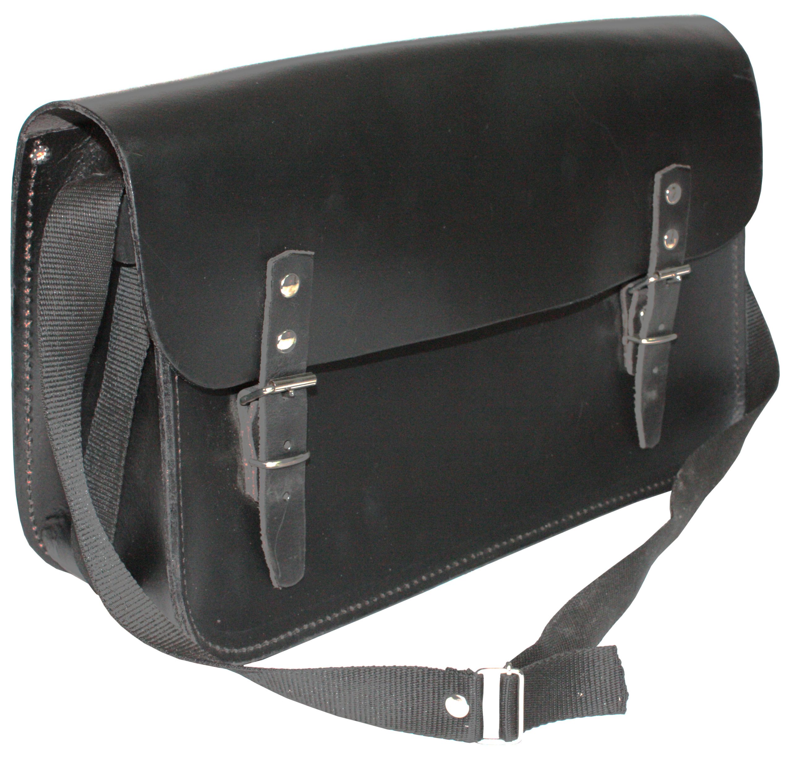 in cuoio nero lucido. Con tracolla e pattina salvaspalla. Dimensioni mm 400x140x240h