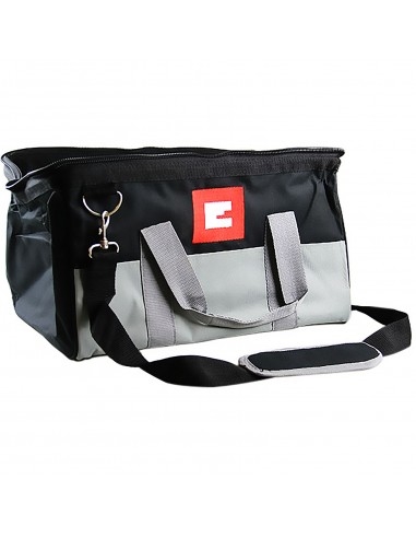 Borsa rigida firmata Einhell ideale per il trasporto di utensile da lavoro. Dotato di tracolla. La fascia grigia ad entrambi i lati della borsa contiene delle tasche.