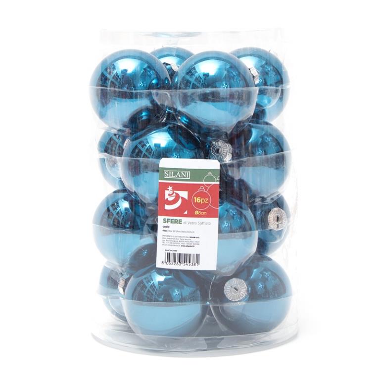 Box 16 sfere vetro d.8 cm blu