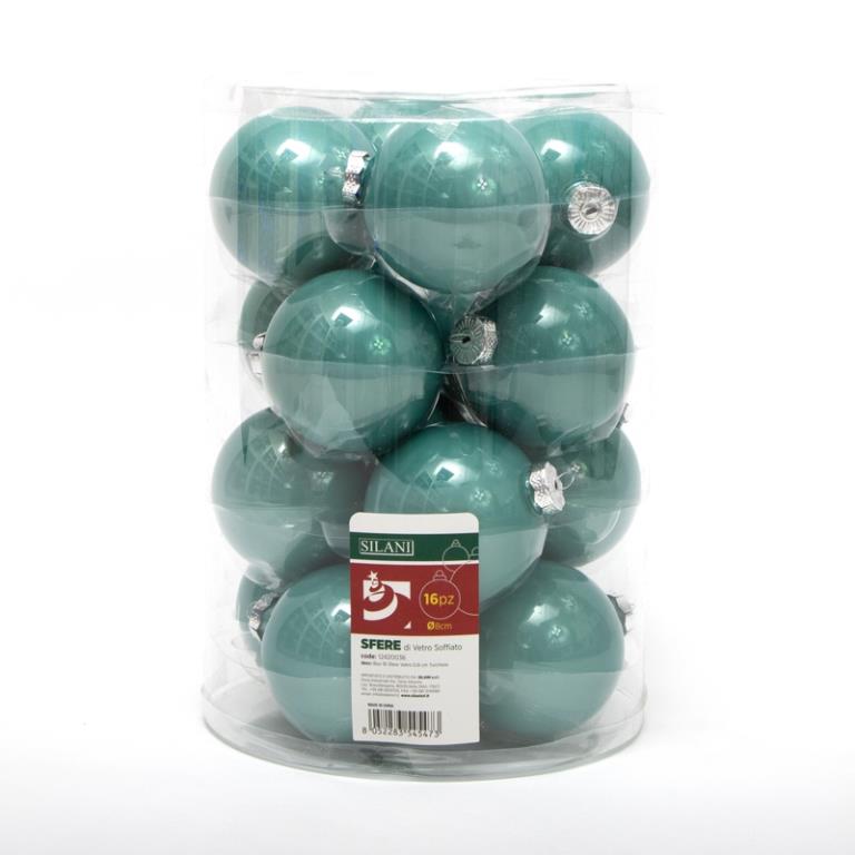BOX 16 SFERE VETRO D.8CM TURCHESE