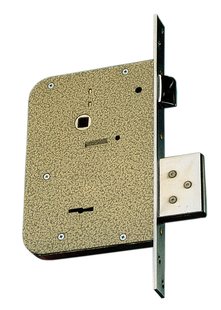 Art. 5000 da infilare. Chiusura laterale con scrocco e catenaccio a 4 mandate. Frontale mm 262x22x3 Scatola mm 172x112x17 Entrata 60 mm