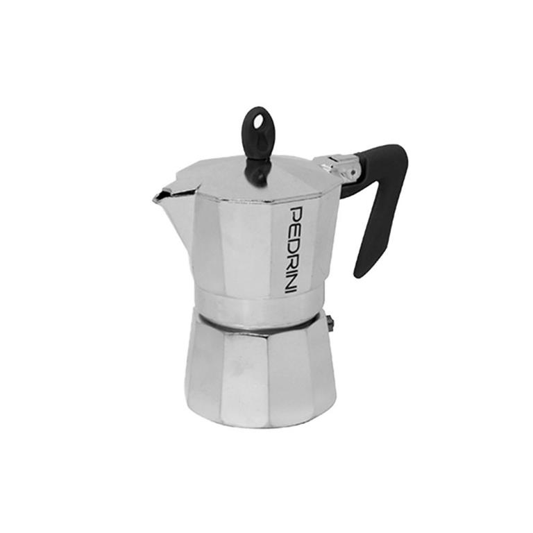 Pedrini Caffettiera Brillant in Alluminio Brillantato con Pomolo e Manico Nero