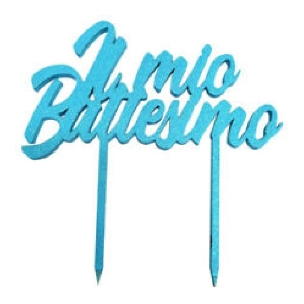Scintillante cake topper in plexiglass con la scritta “Battesimo”, ideale per porre sulla torta in occasione del battesimo.