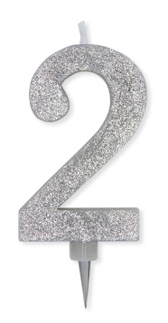 Candelina numero 2 max di cera sweety argento glitter