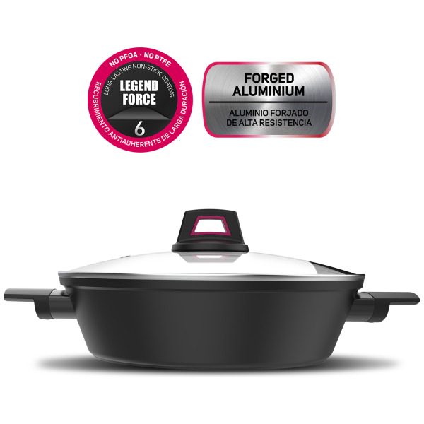 Casseruola bassa in alluminio forgiato di 28 cm di diametro, nella quale potrai cuocere cucinare le tue ricette tradizionali preferite senza che si attacchino sul fondo. Antiaderente in alluminio la puoi utilizzare in ogni tipo di cucina: vetroceramica, fornello elettrico, gas o induzione. No PFOA.