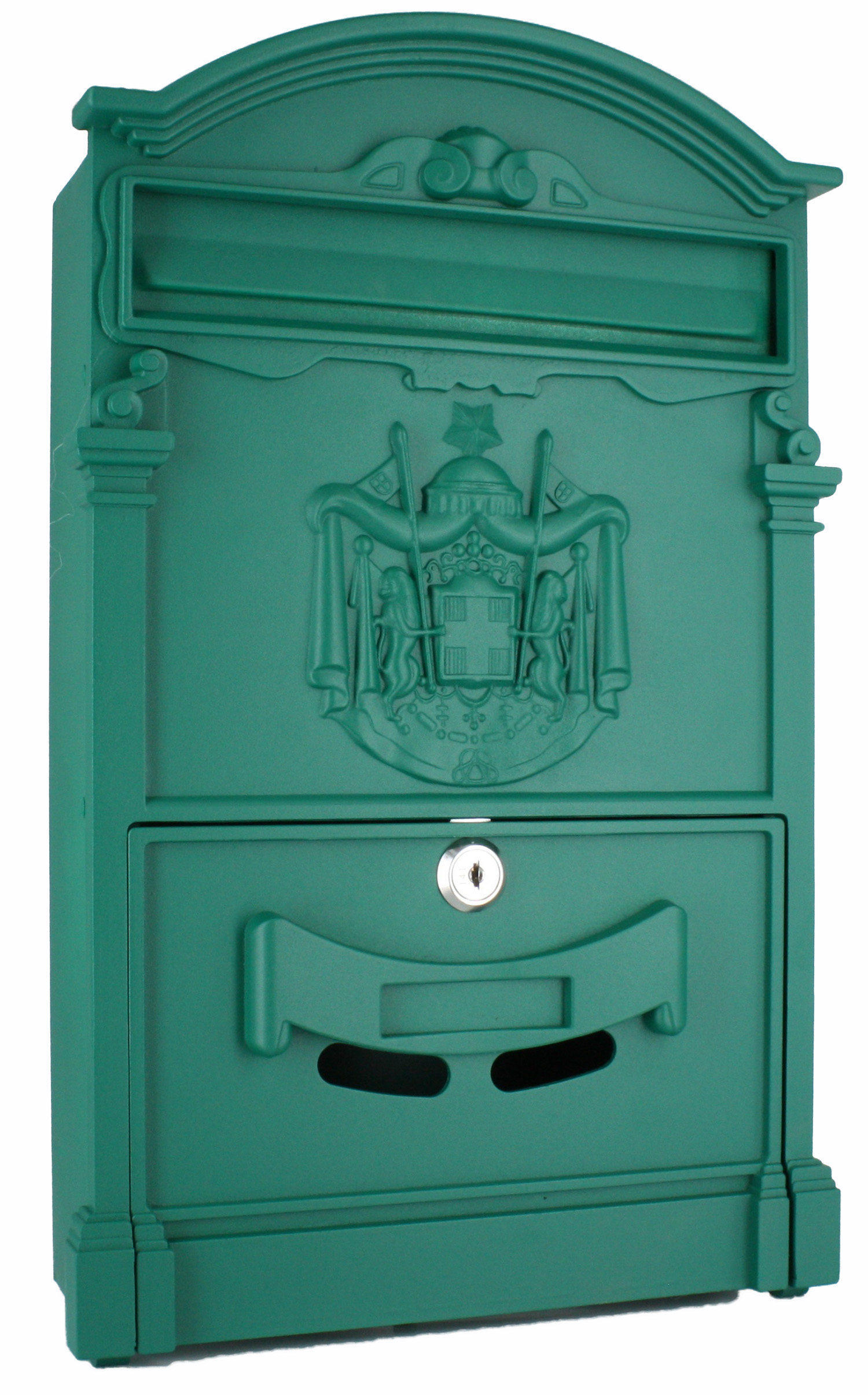 Mod. REGIA POSTA in alluminio pressofuso verniciato. Serratura a cilindro. Con 2 chiavi. Dimensioni mm 260x90x410h Finitura verde