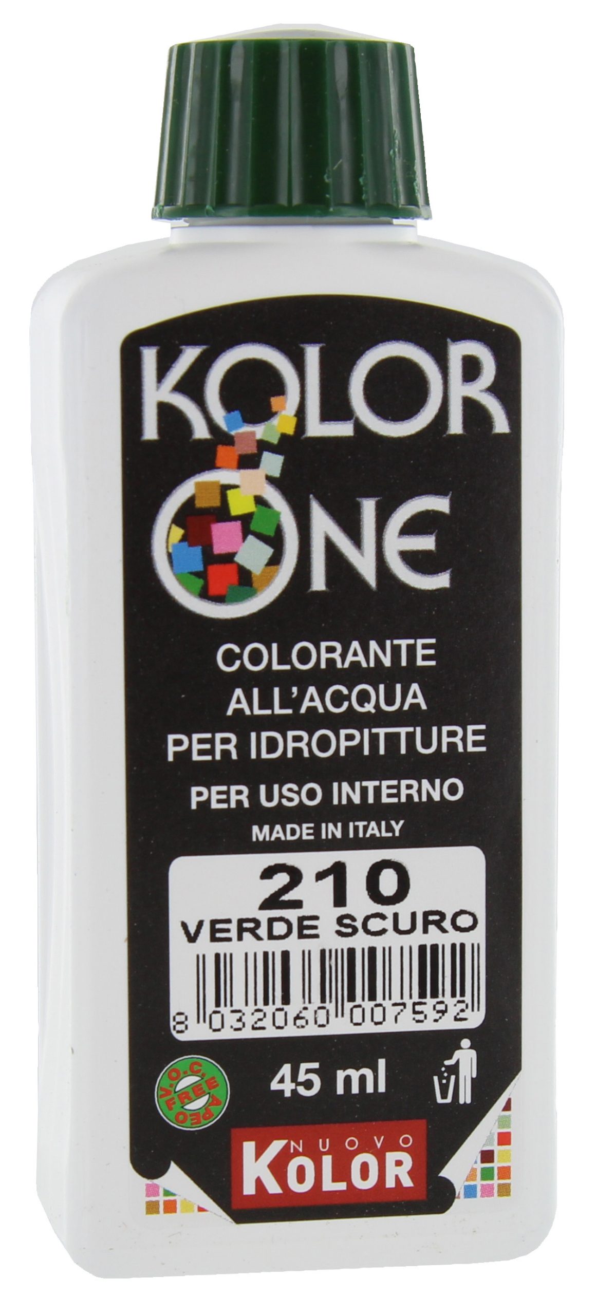 Acquistabile in confezione da 12Coloranti per idropitture – Colorante kolor one ml.45 n.210 verde scuroID: 27817 – Rif: KOLOR 45-210
