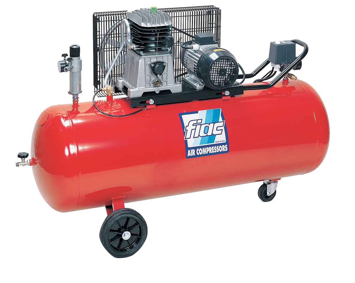Mod. AB 200/360 la trasmissione operata tramite una cinghia trapezoidale con protezione integrale delle parti in movimento. 2 cilindri monostadio in ghisa. Assenza totale di perdite dolio (sintetico) grazie alla particolare forma costruttiva del carter monopezzo brevettato. Gruppo distribuzione con doppio volano e cinghia di distribuzione, protetti da una griglia metallica per evitare incidenti. Spia livello olio. Verniciatura a polvere epossidica. Alimentazione 400V – 50 Hz. Potenza motore 3,0 Hp (2,2 kW). Velocit 1.500 giri/min. Aspirazione 350 l/min. Pressione max 10 bar. Capacit serbatoio 200 L. Sicurezza con controllo tramite valvola di sicurezza e pressostato tarati a 10,5 bar. Dotazioni un uscita nella parte superiore del serbatoio gestita da un pressostato, con regolatore di pressione, un rubinetto femmina a sgancio rapido universale, doppio manometro di lettura uno per la pressione nel serbatoio e uno per la pressione di lavoro. Rumorosit 74 dB. Munito di maniglia e ruote. Dimensioni 1.460x