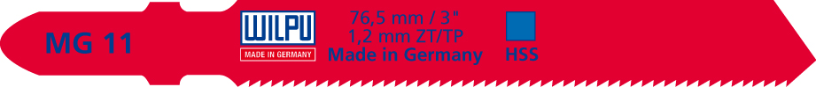 Art. MG11 HSS per metalli e acciaio inox. Attacco a baionetta. Dimensioni 76,5 x 7,8 x 1,0 mm. Confezione 5 lame da 55 mm.