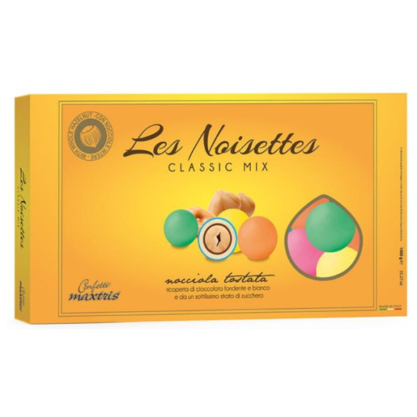 Nocciola tostata ricoperta da cioccolato fondente e bianco e da un sottile strato di zucchero.