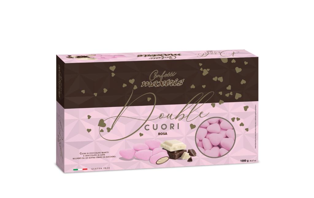 Cuori di cioccolato bianco e cioccolato al latte ricoperti da un sottile strato di zucchero.