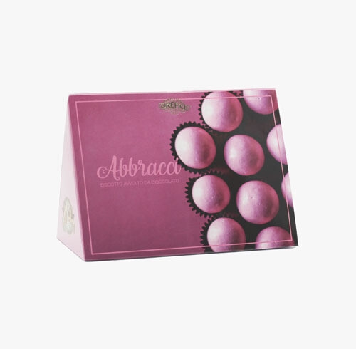 cuore di biscotto fritto avvolto in un doppio strato di cioccolato, fondente all’interno e bianco all’esterno.