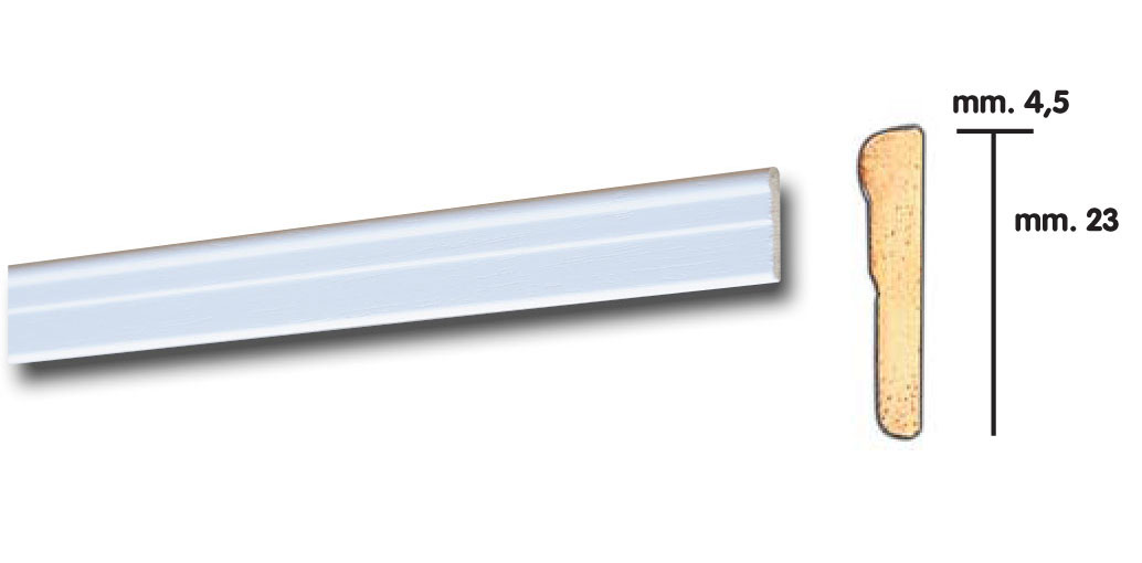 Barocco. In legno Ayous verniciato. Per la decorazione di pareti. Dimensioni mm 4,5×23 Lunghezza 200 cm Colore bianco