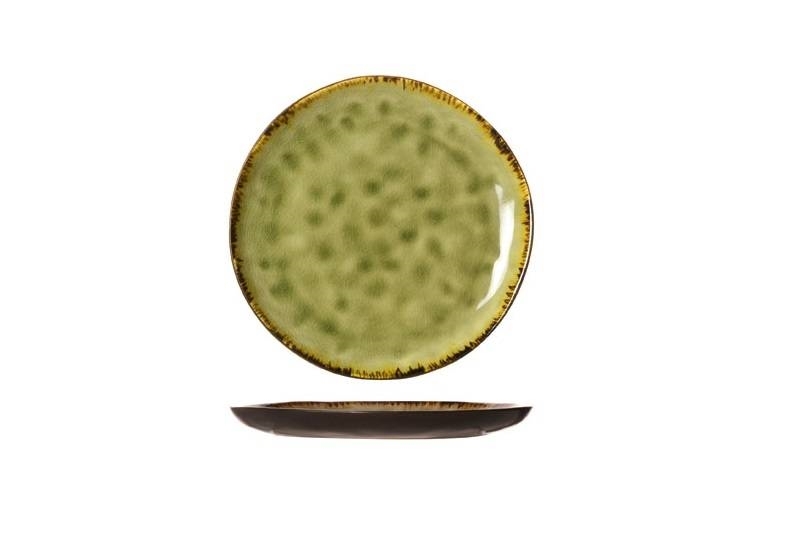 Piatto piano in stoneware da un diametro 20 cm, colore verde-marrone