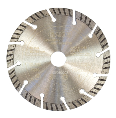 B07235 Per taglio asciutto e bagnato 150 mm. Sinterizzato. Altezza segmento 10 mm. Perforazione 22 mm. Per Calcestruzzo, calcestruzzo armato, cemento, mattoni. Peso 0,21 kg.